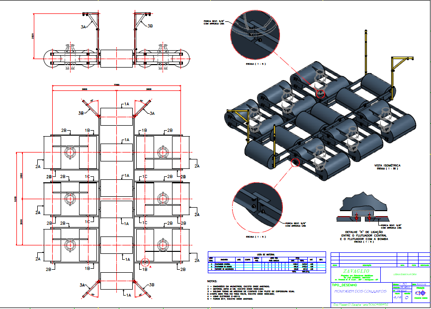 Flutuadores para suporte de sistemas de captação e adução de água bruta, largamente utilizada por indústrias que fazem captação em APP (Área de Preservação Permanente) às margens de lagoas e em sistemas de tratamento de esgoto em ETE (Estação de Tratamento de Esgoto).