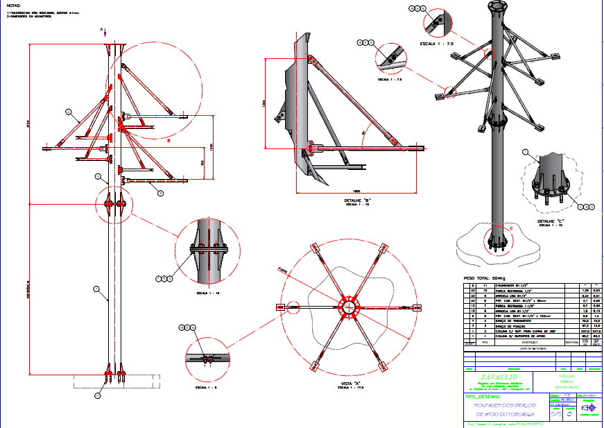 Estrutura de suporte da calha do toboágua e plataforma de acesso.